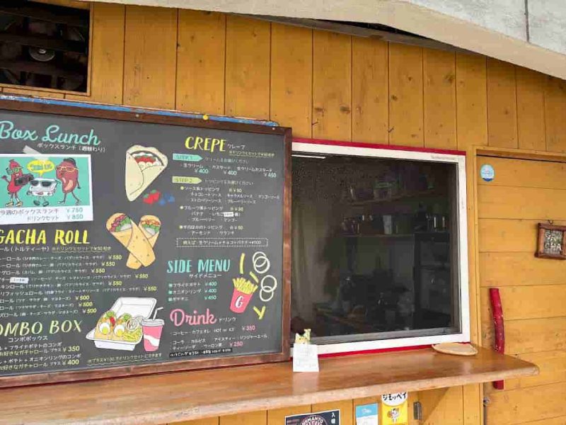 GACHA(トルティーヤ): 道の駅駐車場(海側)の端にある、テイクアウト専門店。個性的かつ腹持ちバッチリのトルティーヤメニューがリーズナブルに提供されてます。ドライブのお供にも、ちょっとした軽食にもぴったり。お店の横の丘にはベンチがあり、そこからの景色もまた格別で、映え写真が撮れると人気!