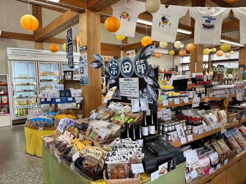 こぢんまりとした駅内には、地元のお土産や特産品が所狭しと並んでいます。