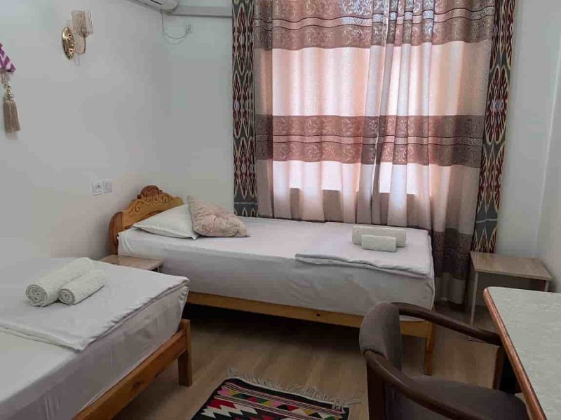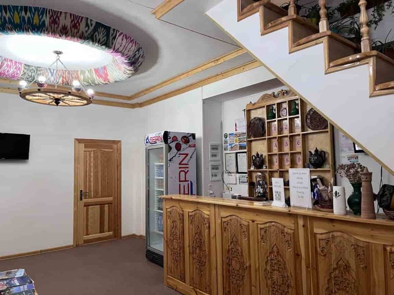 このような「民宿スタイル」のホテル、ウズベキスタンの旧市街のホテルでは割と一般的なスタイルです。中庭やテラスがあったり、簡単な朝食が付いているところが多く、部屋自体もコンパクトな場合が多いです。