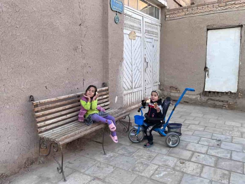 散策中には、可愛らしい現地の子供たちが笑顔でカメラにポーズをとってくれたり、人懐っこい猫が近づいてきたりと、自然と笑顔になる出会いも。こうした小さな触れ合いも、ヒヴァの旅をより豊かなものにしてくれるはずです。