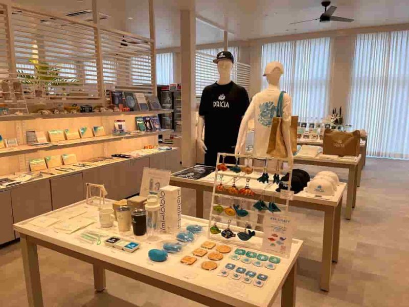 ソファやテーブルがゆったりとたくさん置かれたロビーは自由に使うことができます。その奥には、洗練されたお土産物や、お菓子やインスタント物を売っている売店もあります。