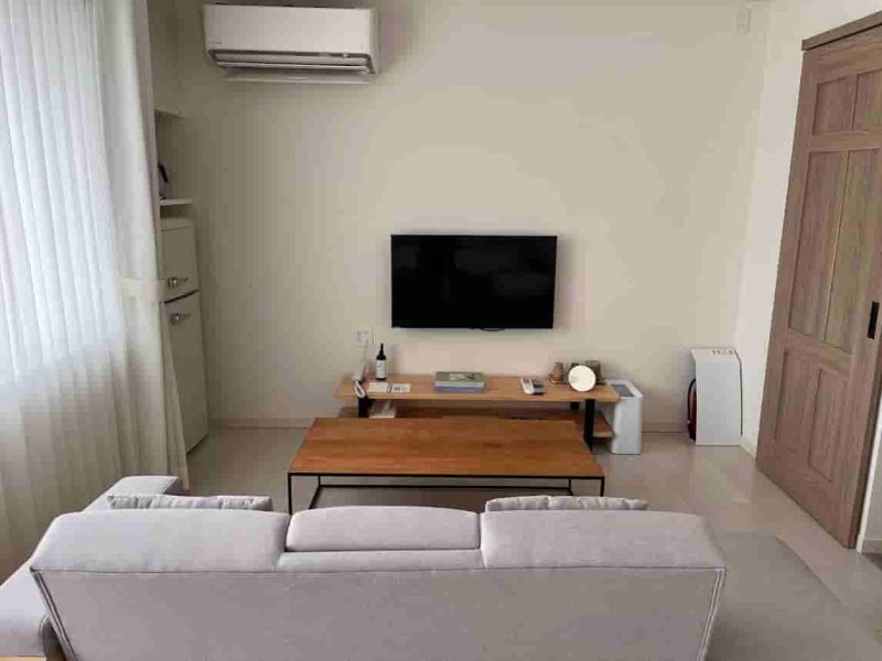 ケトルはデロンギ、ドライヤーはダイソンと、家電にもこだわりが感じられる。冷蔵庫はメーカー不明ですが、冷凍庫が独立タイプなのは嬉しいポイント。エアコンはダイキン製で新しく、快適な室温を保ってくれました。テレビはスマートテレビなのでYouTubeなども見ることができます!かなり嬉しい!