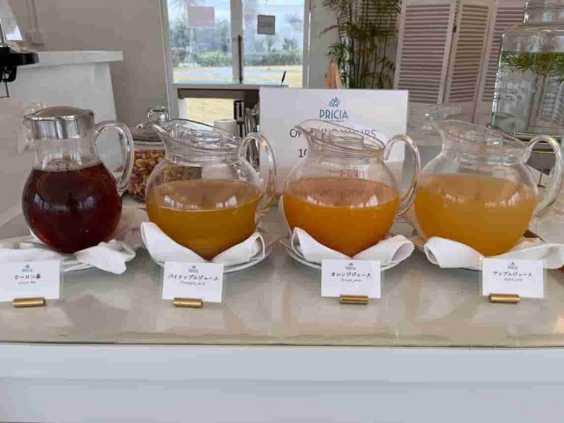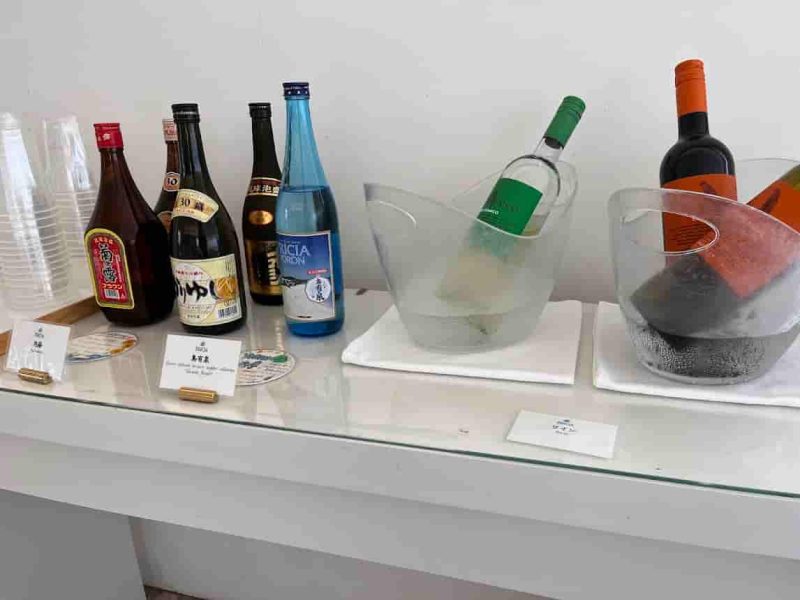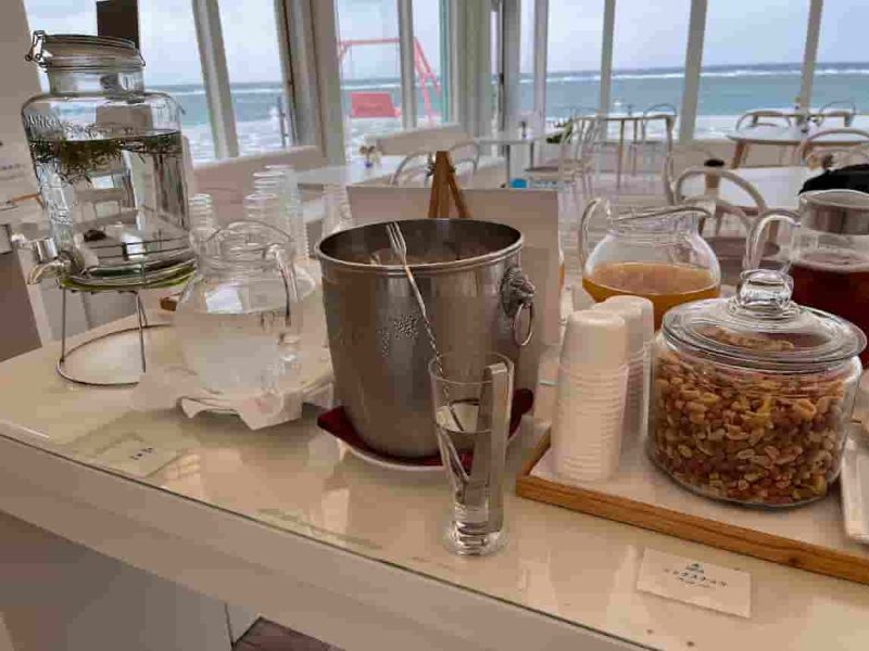 また、リゾート内にあるカフェ「パラディソス」は、10時から18時まで無料ラウンジとして利用できます。ナッツやオリオン生ビール、お酒、ドリンク類が用意されています。無料なのにびっくりするほどドリンクの種類が多いのが魅力!